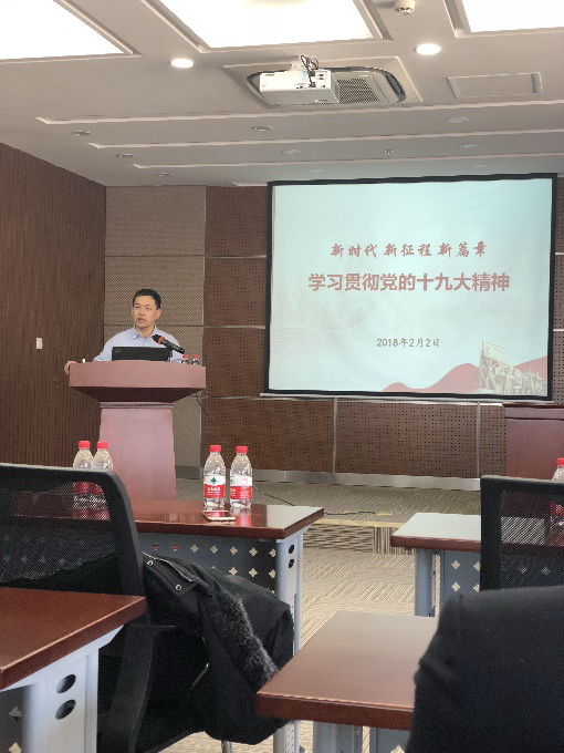 2018年2月2日下午,金年会金字招牌至上网站党支部邀请化物所党委书记王华同志来到公司,为公司党员干部和全体员工做了一次题为《学习贯彻党的十九大精神》报告。